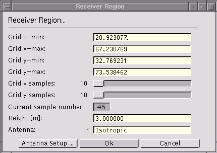 (Shortcut key: p). The dialog box is used to set certain parameters which are taken as default values for interactive receiver placement.